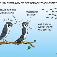 Cartoon Loko Cartoons Duivenmelkers beschuldigen roofvogels van het op grote schaal vermoorden van hun duiven. Voor het gemak vergeten ze daarbij even, hoeveel duiven zij ieder jaar zélf vermoorden. Grote aantallen duiven die tijdens de vluchten de weg naar huis niet of niet op tijd kunnen terugvinden, laten zij welbewust verkommeren.…