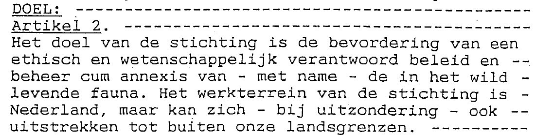 Onze statuten spreken van twee belangrijke uitgangspunten, ethisch en wetenschappelijk, waar het de omgang van de mens met de natuur en de daarin levende diersoorten betreft:
