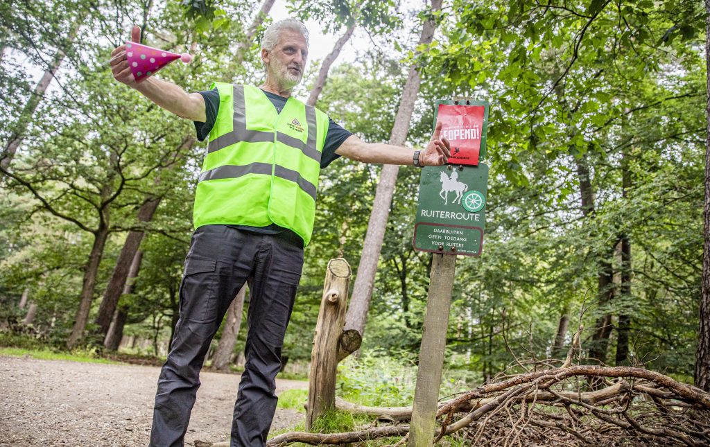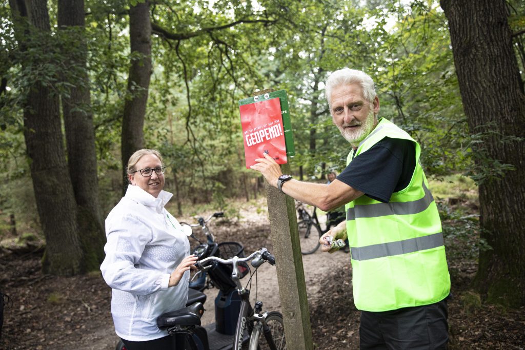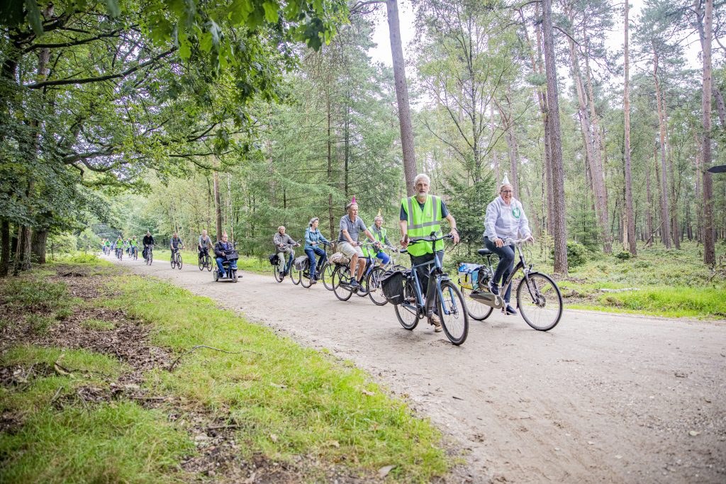 De Faunabescherming heeft dit weekend in demonstratieve fietstocht door het Kroondomein haar vreugde geuit over het “subsidiebesluit” van het kabinet, waardoor de Koning vanaf 2022 het park jaarrond moet openstellen, als hij tenminste de subsidie voor het beheer van het Kroondomein wil behouden. Vandaar de feesthoedjes die bij deze fietstocht werden gedragen.